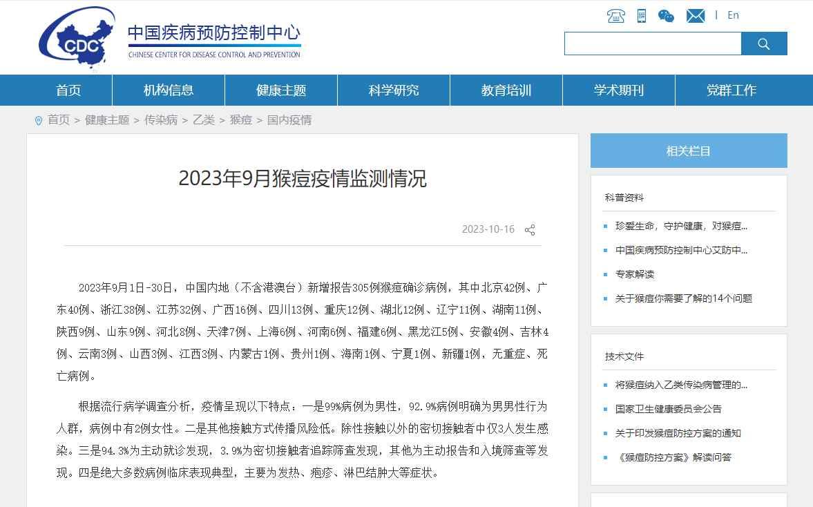 中疾控:9月新增報告305例猴痘確診病例分享到: