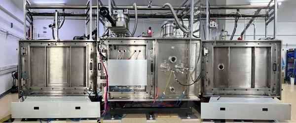 圖1. 自主研製的磁控濺射大面積鍍硼專用裝置 基於硼轉換的中子探測器因其優異的性能已成為當前國際上研究的熱點,隨著CSNS二期工程即將啟動,擬建的中子譜儀對大面積、高效率、位置靈敏的新型中子探測器需求緊迫。如何製備出高性能中子轉換碳化硼薄膜是其中最核心的技術,目前也只有美國、歐洲等少數幾個發達國家掌握了該項技術。 2016年在核探測與核電子學國家重點實驗室的支持下,CSNS探測器團隊與同濟大學朱京濤教授合作,開始研製一台磁控濺射大面積鍍硼專用裝置,鍍膜厚度範圍為0.01~5微米,同時支持單、雙面鍍膜,支持射頻和直流鍍膜。2021年6月,該裝置通過了重點實驗室驗收並投入使用。