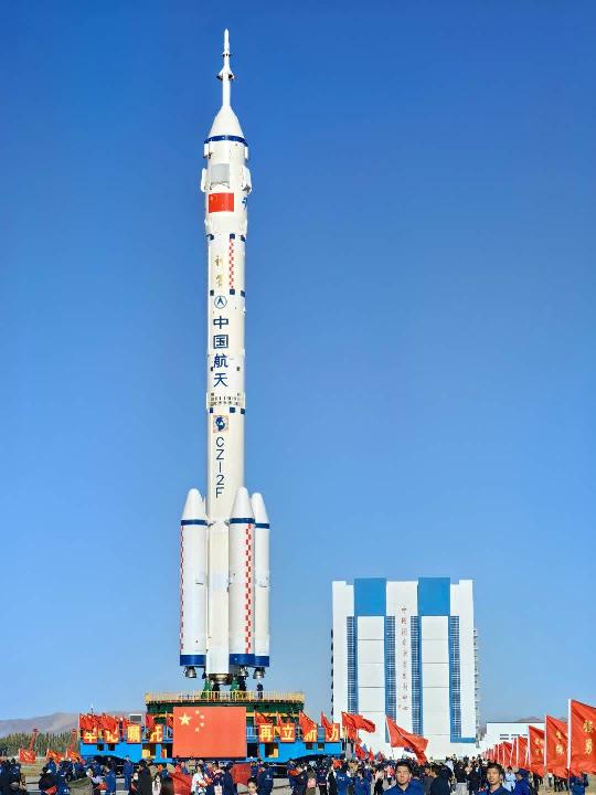 香港中通社10月19日電 據中國載人航天工程辦公室消息,北京時間10月19日,神舟十七號載人飛船與長征二號F遙十七運載火箭組合體已轉運至發射區。