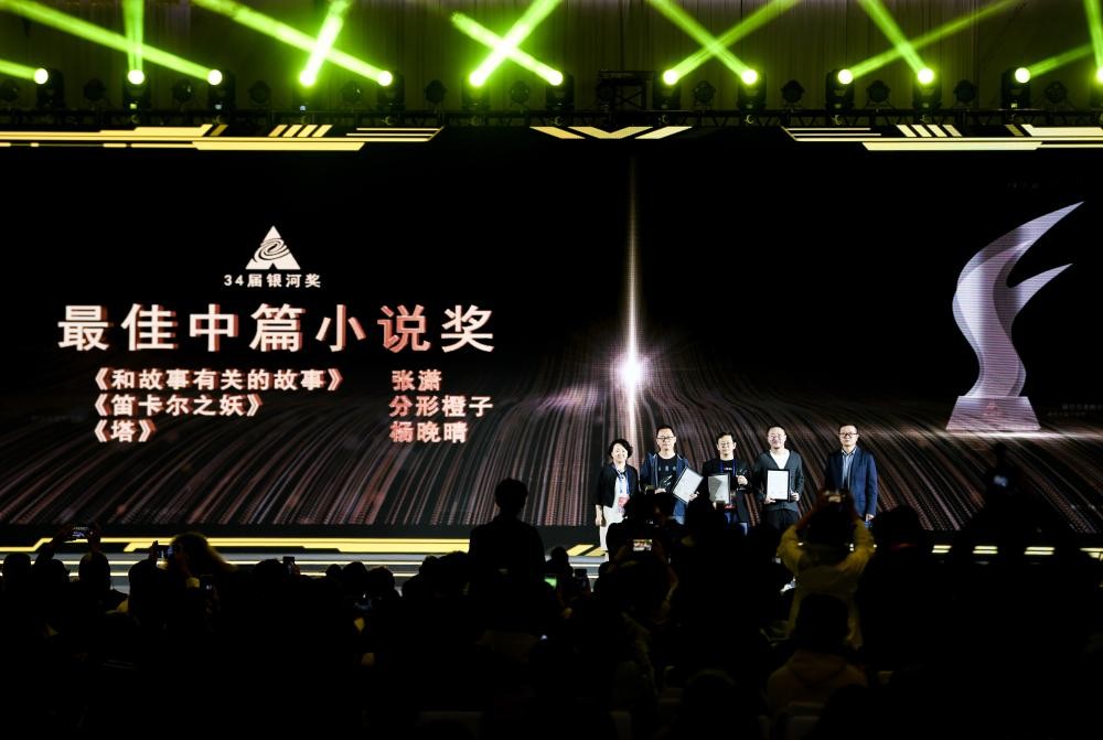 第34屆中國科幻銀河獎頒獎現場。新華社圖片 本次頒獎典禮是在首次於中國舉辦的世界科幻大會期間舉行的。其中,《和故事有關的故事》《笛卡爾之妖》《塔》3部作品獲評最佳中篇小說,《鄢紅》《白頭雀》《看不見的雲》《棄日無痕》《命懸一線》5部作品獲評最佳短篇小說,《隱秘死角》獲評最佳網絡文學獎,賈煜獲得最佳新人獎,最受歡迎外國作家獎由韓國作家金草葉獲得。江波的《命懸一線》同時也入圍了今年的世界科幻大會雨果獎。 值得一提的是,為感謝在成都申辦世界科幻大會過程中提供幫助的國際友人,此次銀河獎還首次設立了國際傳播獎、國際交流功勛兩大獎項。 銀河獎由《科幻世界》雜志舉辦,於1986年首次頒獎。 【編輯:馬華】