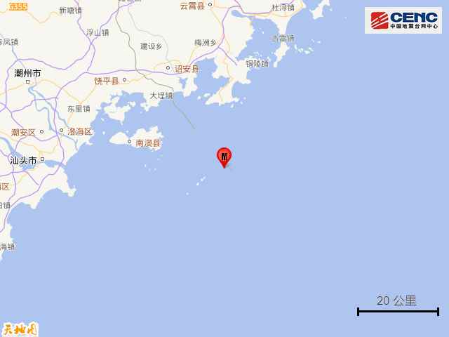 據介紹,震中距南澳縣39公里、距福建東山縣43公里、距福建詔安縣49公里、距饒平縣55公里、距澄海區67公里,距汕頭市72公里。
