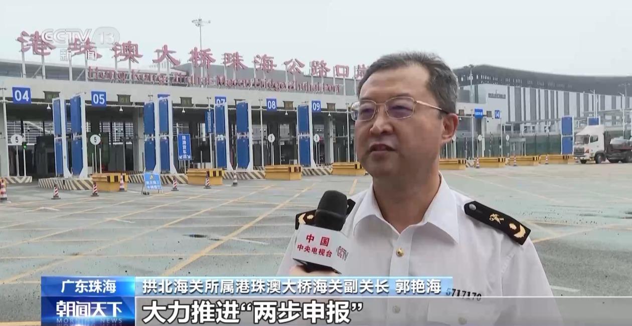拱北海關所屬港珠澳大橋海關副關長 郭艷海:我們積極推進通關便利化改革,大力推進“兩步申報”、廣東陸路跨境快速通關模式、粵港粵澳“跨境一鎖”、“綠色關鎖”等便利措施,改進和升級“一站式”車輛通關驗放系統,實現通關效率和通關效能“雙提升”。
