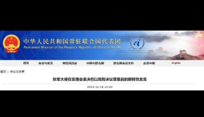 表決後以色列指責中俄,張軍:把中國當對手是選錯了對象分享到: