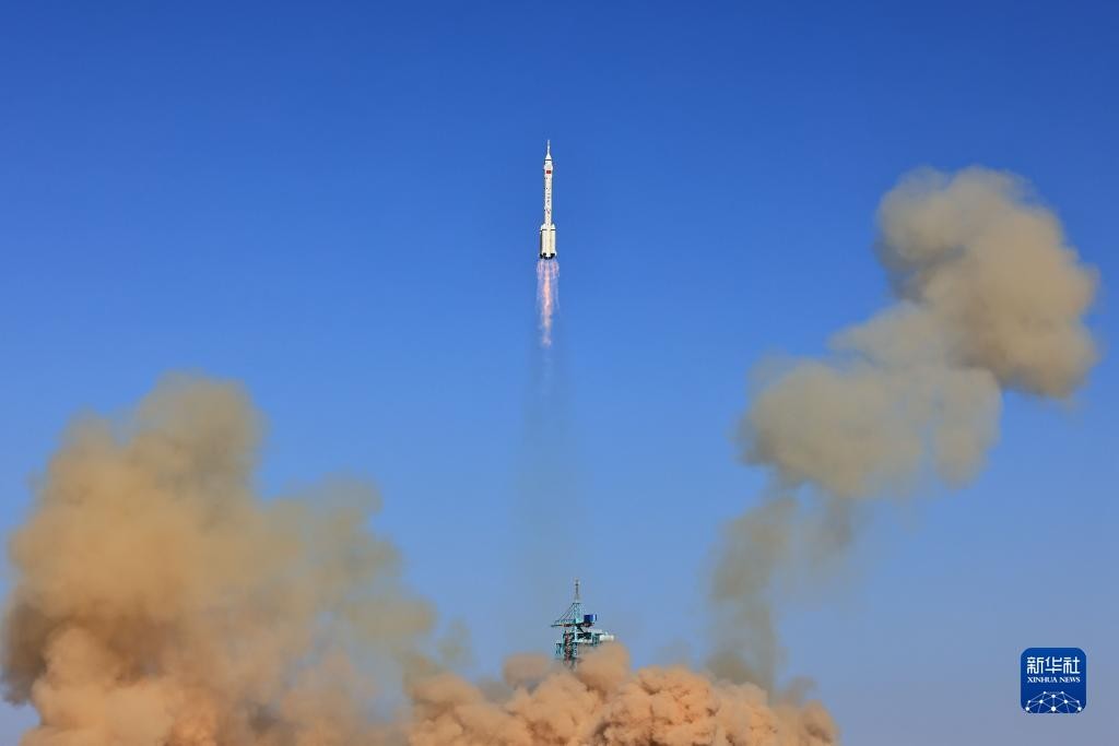 10月26日11時14分,搭載神舟十七號載人飛船的長征二號F遙十七運載火箭在酒泉衛星發射中心點火發射。新華社圖片