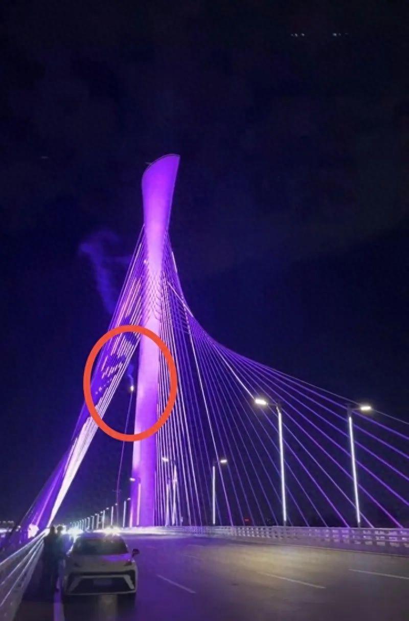 網傳視頻截圖 石家莊交投集團微信公眾號11月6日發佈情況通報,11月5日19:36,由中交第二公路工程局有限公司承建的復興大街滹沱河大橋東半幅2#斜拉索距主塔近端位置出現冒煙起火,建設、設計、施工、消防、交警等相關單位第一時間趕到現場進行處置,2#斜拉索斷落至橋面,未造成人員傷亡和車輛損毀。11月6日0點大橋恢復正常通行。 經初步分析,因2#斜拉索亮化線路電線接頭短路,導致起火燃燒、變形淬斷。 下一步,相關單位將盡快對斷裂的2#亮化斜拉索進行起火原因調查和搶修恢復,同時對大橋加強巡查維護,確保安全。