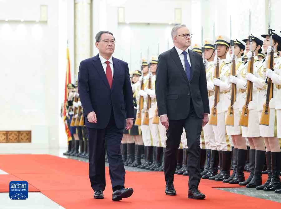 11月7日上午,國務院總理李強在北京人民大會堂同來華進行正式訪問的澳大利亞總理阿爾巴尼斯舉行會談。這是會談前,李強在人民大會堂北大廳為阿爾巴尼斯舉行歡迎儀式。新華社記者 劉彬 攝 據中國官媒發布的會談內容,李強表示,中澳合作潛力巨大,中方願同澳方一道,遵循經濟規律,堅持市場原則,鞏固加強能礦等傳統領域合作,拓展綠色發展、數字經濟、科技創新、健康產業等新興領域合作,避免把經貿問題泛政治化、泛安全化,實現共贏發展,促進地區繁榮。中方願同澳方推進教育、文旅、地方、青年等領域交流合作,進一步便利雙方人員往來,讓中澳友好在兩國不斷深入人心。 阿爾巴尼斯表示,中國是澳大利亞的重要合作伙伴,澳中關係不應由分歧來定義。澳方奉行一個中國政策,願同中方增進相互理解,深化貿易、投資、科技、人文等領域合作,通過溝通對話妥善管控分歧,共同應對氣候變化、糧食安全、跨國有組織犯罪等全球性挑戰,維護地區和世界和平與繁榮,推動澳中全面戰略伙伴關係朝著積極、穩定、建設性方向發展。 此外,雙方發表《中澳總理年度會晤聯合成果聲明》。兩國領導人再次確認支持中澳全面戰略伙伴關係,重申穩定、建設性雙邊關係的重要性。雙方一致認為,只要妥善處理分歧,兩國就能發展雙邊關係,維護各自國家利益。 根據聲明,兩國領導人同意繼續和拓展多個領域接觸。政治對話方面,包括恢復中澳總理年度會晤、中澳外交與戰略對話、中澳戰略經濟對話、中澳部長級經濟聯委會及其他政府間對話機制。 雙邊貿易方面,重申中澳自貿協定的重要性,同意促進經貿關係,包括盡早在澳舉行中澳自貿協定聯委會會議,舉辦中澳首席執行官圓桌會會議,重申對“經認證的經營者”(AEO)互認安排的承諾,推進實施《區域全面經濟伙伴關係協定》,推動達成標準、計量、知識產權、競爭、教育、食品安全等領域的合作諒解備忘錄。 氣候變化、能源和環境方面,包括恢復中澳氣候變化和能源領域對話,啟動關於土壤碳檢測和氣候智慧型農業實踐的技術合作。 人文交流方面,包括制定1981年《中澳文化合作協定》第15個落實計劃,開展文化、體育、教育、創新、學術、航空、衛生、旅遊等領域交流。 便利人員往來方面,包括同意在互惠基礎上向旅遊、商務人員開放3至5年多次入境簽證。 此外,澳方邀請中國領導人在雙方方便時訪問澳大利亞,中方對此表示歡迎。(完) 【編輯:丘志彬】