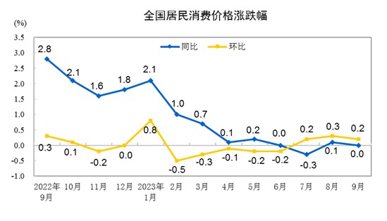 中國10月份居民消費價格同比下降0.2% 環比下降0.1%分享到: