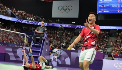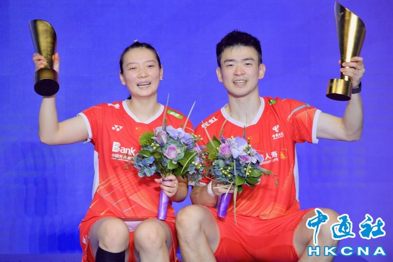 11月26日,廣東省深圳市,中國組合鄭思維(右)/黃雅琼以2比0的總比分擊敗韓國組合徐承宰/蔡侑玎,奪得2023李寧·中國羽毛球大師賽混雙冠軍。 香港中通社圖片 中國組合鄭思維/黃雅瓊僅用了31分鐘就速勝韓國組合徐承宰/蔡侑玎,獲得混雙冠軍。女單決賽是陳雨菲對陣韓悅的“中國德比”,可惜這場精彩的較量卻提前結束——兩局過後雙方戰成1比1,韓悅左邊小腿傷勢加重無法堅持,最終選擇退賽,陳雨菲奪冠。隨後,來自日本的志田千陽/松山奈未、奈良岡功太分別戰勝對手,奪得女雙、男單冠軍。