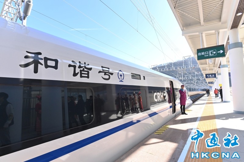 圖為在茂縣站等待發車的首發列車。 香港中通社圖片 這也是首條穿越中國最大羌族聚居地的動車線路。值得注意的是,在安州至鎮江關約134公里的線路中,隧道線路佔95.5%,幾乎全程在隧道穿行。 川青鐵路從平均海拔500米的成都向西出發,途經三星堆、什邡、綿竹、安州、茂縣等站,到達海拔2503米的青藏高原東麓的鎮江關站,穿行238公里僅需55分鐘。 羌族被稱為"雲朵上的民族",人口約30萬人,是中國最古老的民族之一,主要聚居在四川西北部。茂縣是中國最大羌族聚居縣,人口10.86萬人。過去交通落後、道路難行,嚴重制約了當地發展。 川青鐵路首段開通,填補了川西北高原不通鐵路的空白。這將是中國西北地區一條快捷綠色交通運輸和生命救援通道,對於便利沿線各族群眾出行,促進區域經濟高質量發展具有重要意義。