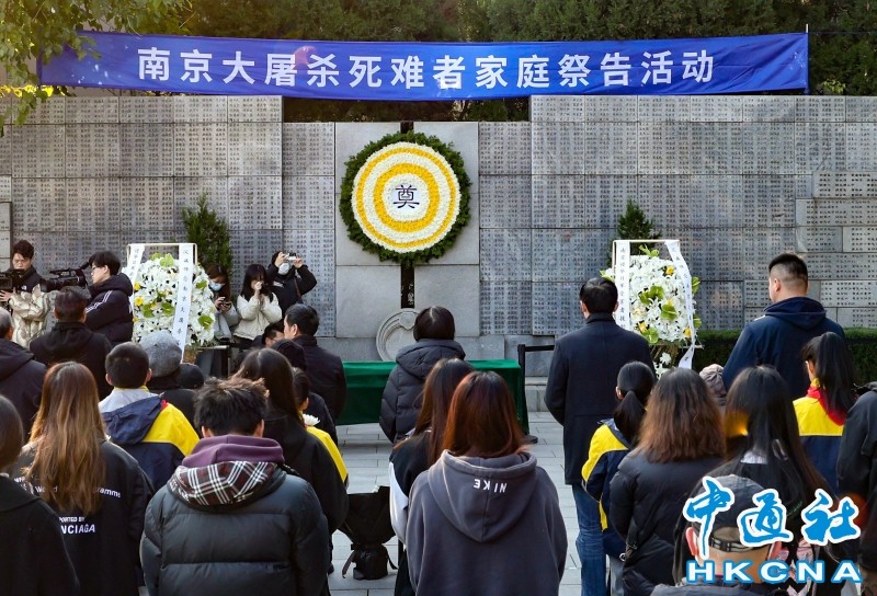 香港中通社12月3日電 南京大屠殺死難者家庭祭告活動12月3日在侵華日軍南京大屠殺遇難同胞紀念館“哭牆”前舉行。當天一大早起,南京大屠殺倖存者代表、遇難同胞遺屬代表、侵華日軍南京大屠殺遇難同胞紀念館員工代表、青少年學生等通過獻花、默哀的形式,祭奠在86年前遇難的親人和同胞。