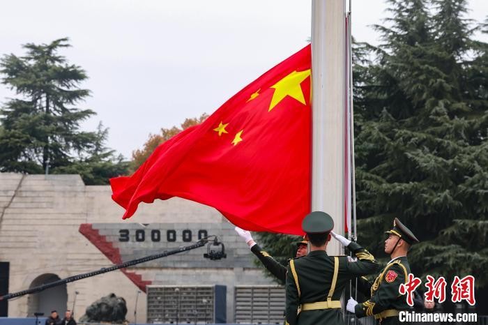 12月13日是南京大屠殺死難者國家公祭日。上午8時,升國旗、下半旗儀式在侵華日軍南京大屠殺遇難同胞紀念館舉行。泱波 攝