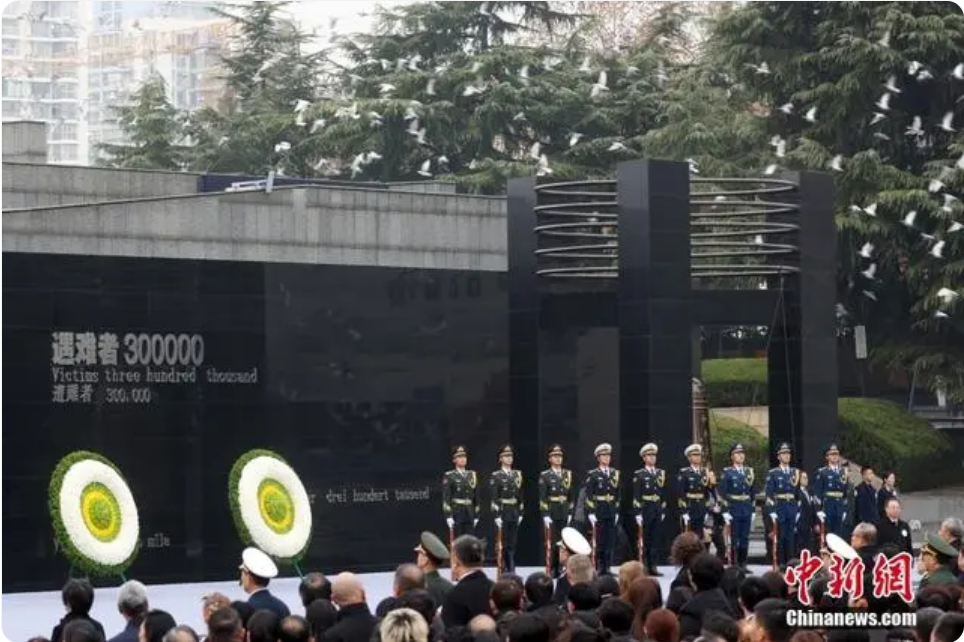 (圖:中新社) 上午8時,升國旗、下半旗儀式在侵華日軍南京大屠殺遇難同胞紀念館舉行。 集會廣場中央,“南京大屠殺死難者國家公祭儀式”白色大字,在黑色“災難之牆”的映襯下格外醒目。上午10時,公祭儀式在紀念館舉行。 2023年是南京大屠殺慘案發生86周年。今年的12月13日,是第十個南京大屠殺死難者國家公祭日。(完) 【編輯:李彥洲】