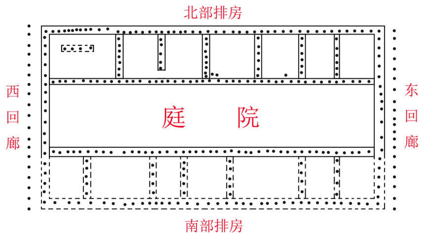 古城寨遺址1號夯土台基全景圖 據悉,新發現的1號夯土台基規模較大,面積在1800平方米左右,平面呈長方形,長約60米,寬約30米。該夯土台基中部高、四周低,表面較為平整,其上發現有數排規律分布的柱洞。 “從柱洞的分布規律來看,這一夯土台基整體應是南北為排房建築、中部為庭院、東西帶回廊的結構,規模宏大,結構複雜。”古城寨遺址發掘現場負責人李博說。