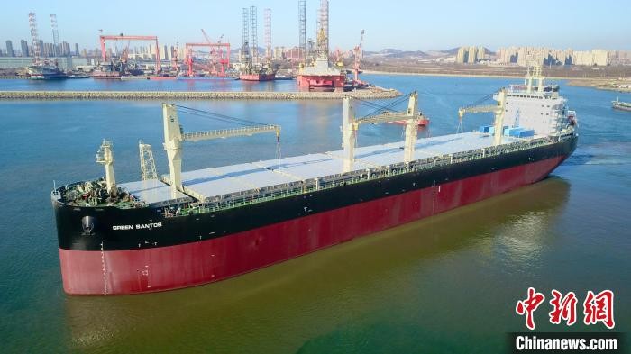 香港新聞網12月22日電 由大連中遠海運重工為交銀金租建造的系列77000噸多用途紙漿船“Green Santos”輪,12月22日在遼寧大連命名交付,該輪是目前中國交付的首制世界最大多用途紙漿運輸船。
