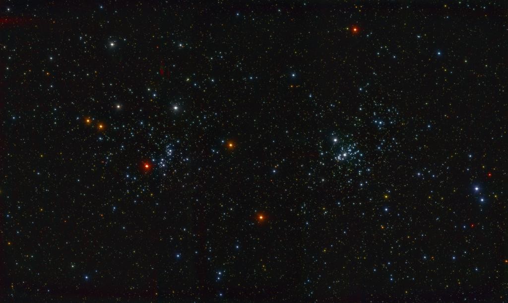 圖為夢飛巡天望遠鏡拍攝到的兩個疏散星團真彩色圖。(雲南大學供圖) 當日,雲南大學召開多信使多波段天文學前沿研討會暨雲南大學天文學系建系十周年紀念活動。會上,雲南大學中國西南天文研究所所長劉曉為發佈了夢飛巡天望遠鏡通過藍黃紅三通道同時拍攝的天體圖像。 “夢飛是國際首台大視場、多通道高精度成像巡天望遠鏡。”劉曉為介紹說,作為重大科技基礎平台,夢飛巡天望遠鏡項目由雲南大學主持,於2018年1月正式立項,望遠鏡主體由南京天文光學技術研究所負責研製。2021年6月,學校與雲南天文台合作,完成麗江高美古台址(東經100°02′,北緯26°42′,海拔3200米)建設。