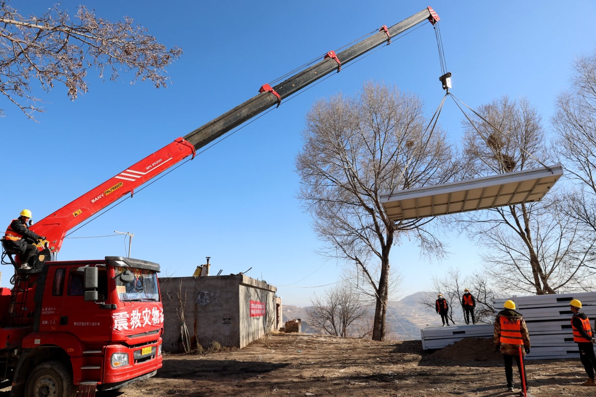 連日來,青海民和地震災區內移動板房陸續建成,保障受災民眾溫暖過冬。(中新社)