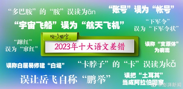 2023年十大語文差錯公佈 短視頻成差錯氾濫區香港新聞網1月3日電 《咬文嚼字》自2006年起發佈年度“十大語文差錯”,已有18年曆史。近日,《咬文嚼字》編輯部發佈了“2023年十大語文差錯”。