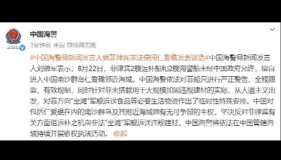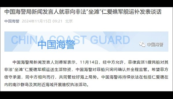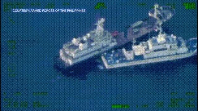 ▲ 2013年10月,菲律賓非法“坐灘”在中國南沙群島仁愛礁的“馬德雷山號”登陸艦內部已多處銹穿。 菲律賓現任總統馬科斯上台後不久,就撕毀與中國的“君子協定”,從2023年起輪番派遣裝滿建築材料的船隻,企圖突破中方海警船正當執法,給“坐灘”軍艦打樁加固,延續對仁愛礁的非法侵佔。 2023年8月,馬科斯公然“跳反”,拒絕拖走“坐灘”軍艦。在被問到菲律賓是否曾向中國作出過拖走軍艦的承諾時,馬科斯揚言,不知道兩國之間有這種協議,如果有,他將立刻撤銷該協議。 三問:是誰一再碰瓷作秀? 據不完全統計,2023年,菲律賓組織了14次向“坐灘”軍艦運補行動。特別是下半年以來,菲方變本加厲,每次向“坐灘”軍艦運送補給,都邀請大量記者同行,近距離拍攝中菲船隻照片視頻,然後通過剪輯拼湊炒作中方阻礙運補、“衝撞”菲方船隻,還聲稱中方使用遠程聲波裝置和軍用級激光武器攻擊菲船員,極力塑造自身“受害者”形象。 實際情況究竟如何? 所謂的“中方衝撞菲方船隻”,實則是菲律賓船隻故意衝撞刮蹭中國執法海警船。