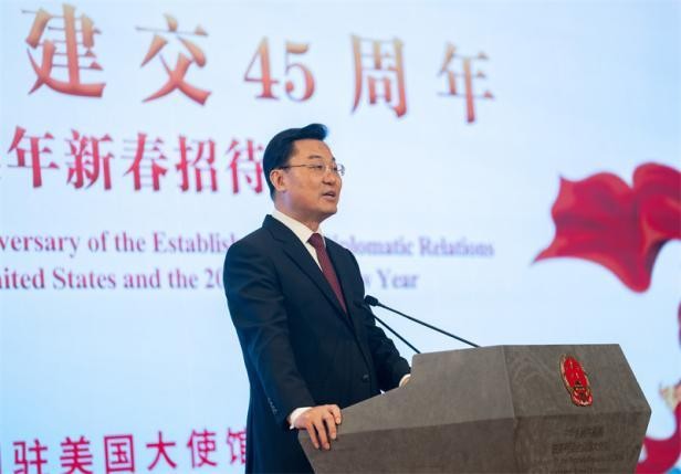 香港中通社1月18日電 據中國駐美國使館17日消息,16日晚,使館隆重舉辦紀念中美建交45周年暨新春招待會。中國駐美大使謝鋒致辭,700多名中美各界人士出席活動。