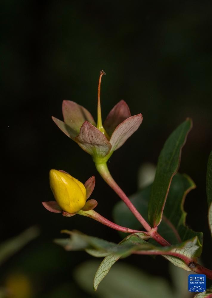 這是2023年5月22日在貴州荔波縣的貴州茂蘭國家級自然保護區拍攝的“荔波金絲桃”。新華社圖片 據研究團隊負責人貴州大學林學院教授安明態介紹,這是科研人員2023年在貴州茂蘭國家級自然保護區開展中國南方喀斯特森林生態系統茂蘭大樣地調查過程中發現的。 該新種的葉片較厚,近革質,葉全緣呈皺波狀,葉中脈兩面凸起,網狀脈明顯,葉兩面下陷,葉背上有白色粉末呈灰白色;花序1至3朵,萼片較大且細脈明顯等特征,與金絲桃屬木本植物其他種區別明顯。