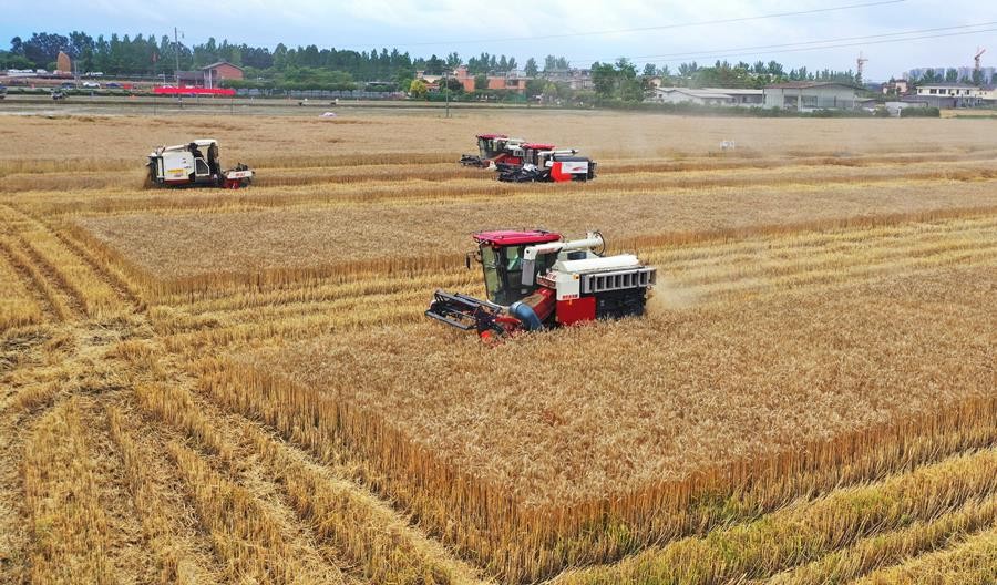 資料圖為四川省成都市崇州,收割機在收割小麥。  香港中通社圖片
