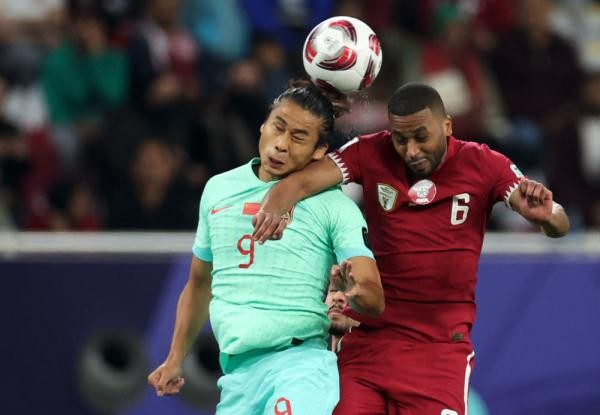 1月22日,中國隊球員張玉寧(左)與卡塔爾隊球員阿卜杜勒·哈特姆爭頂。 新華社記者 曹燦 攝 中國隊本屆亞洲杯小組賽戰績: 1月13日第一輪,中國隊0-0塔吉克斯坦 1月17日第二輪,中國隊0-0黎巴嫩 1月22日第三輪,中國隊0-1卡塔爾 由於存在理論上成為“成績較好的小組第3”的可能,繼而獲得出線資格,所以目前僅積2分的中國隊只得靜待之後幾天其他小組的比賽結果。(完) 【編輯:李彥洲】