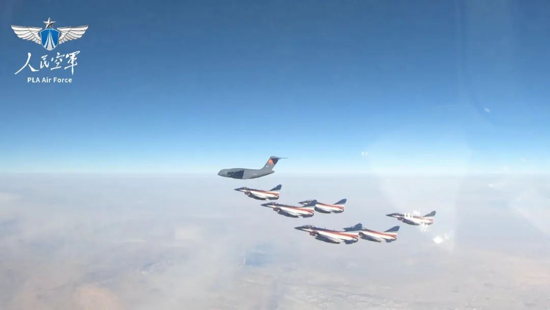 轉場過程中,中國空軍派出運油-20飛機伴隨任務編隊進行空中加油。 空軍八一飛行表演隊組建60多年來,先後裝備殲-5、殲-6、殲教-5、殲-7EB、殲-7GB、殲-10、殲-10C表演機,為170多個國家和地區的700多個代表團,進行700餘次飛行表演。