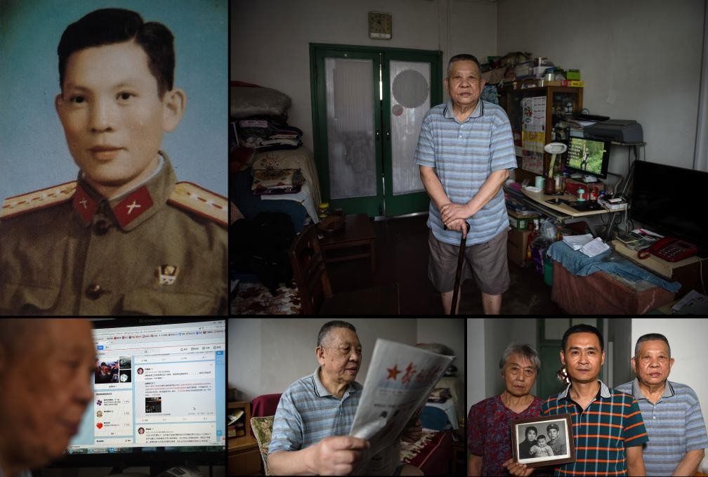 右上:程福保在自己家中;左上:1963年的程福保(翻拍照片);左下:程福保在自己的微博中時常發表南京大屠殺相關的文字;下中:程福保養成了每日讀報的習慣;右下:程福保與老伴、兒子在家中合影(拼版照片,2017年7月14日攝)。新華社圖片 1937年,南京淪陷時,程福保的父親攜家帶口出城逃難,慘遭日軍殺害,留下孤兒寡母艱難生存。1949年南京解放後,程福保迎來人生轉折,成為一名解放軍戰士。“家和國永遠連在一起,無國哪有家啊。”老人生前曾說。 截至目前,南京侵華日軍受害者援助協會登記在冊的在世南京大屠殺幸存者僅剩37位。 【編輯:馬華】