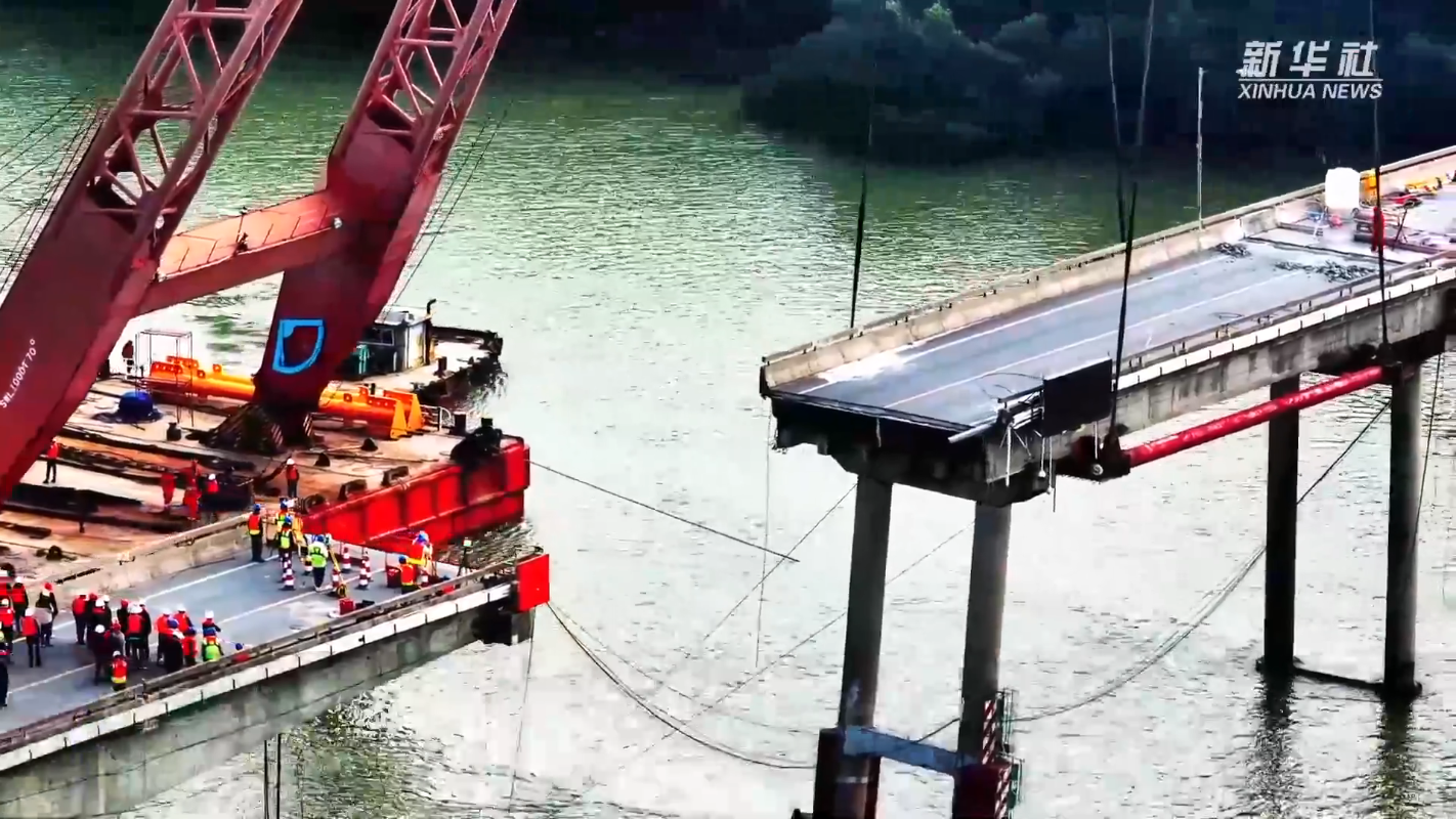 廣州瀝心沙大橋風險跨梁被拆除,正搶建保通便橋