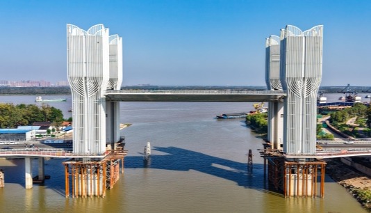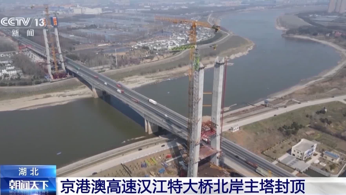 香港新聞網3月13日電 昨天(12日),京港澳高速公路改擴建工程湖北段漢江特大橋北岸主塔順利封頂,為年底實現漢江特大橋按工期目標合龍創造了有利條件。 漢江特大橋是京港澳高速湖北段改擴建的控制性工程,大橋全長1667米,主跨450米,橋面寬23.75米,設計為單向四車道,本次封頂的北岸塔高121.5米。漢江特大橋地處長江中遊地區,地質條件較差、土質鬆軟,地下有30多米深的流沙層,施工難度大。為保證漢江特大橋建設的安全、質量與效率,漢江特大橋建築團隊積極探索,摸索出了一系列智能建造“新工藝”。