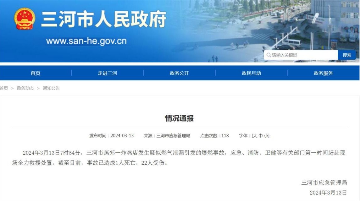 河北廊坊爆炸事故已造成1人死亡22人受傷