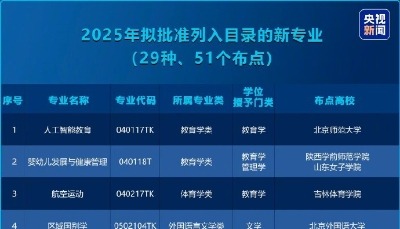 香港中通社3月19日電 據中國教育部19日消息,中國普通高等學校增設24種本科新專業。