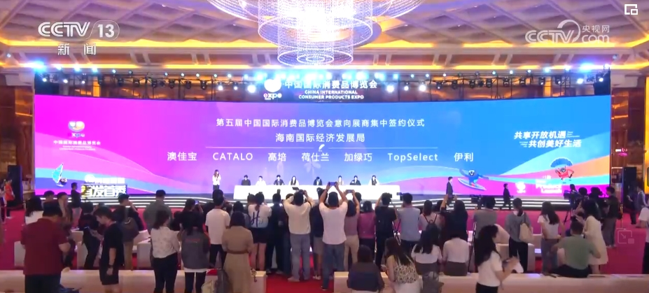 4月18日,消博會現場舉行了第五屆消博會意向展商集中簽約儀式。來自法國、韓國、捷克等國家和地區的36家企業代表與消博會組委會進行了集中簽約,涉及食品保健、智能家居、國貨精品等多個領域。