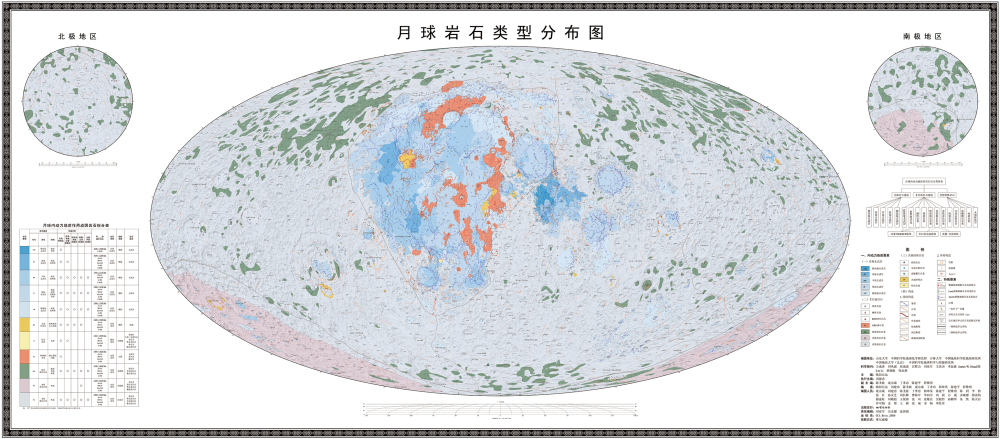 中國科研團隊繪製的全月地質圖。(中國科學院地球化學研究所供圖) 為什麼要繪製這套“寫真集”? 月球是離我們最近的星體,千百年來,人類從未停止過對月球的探索。隨著美國阿波羅、蘇聯“月球”、中國“嫦娥”等探月活動的開展,人類對月球的認識水平前所未有地提升。 “月球地質圖是月殼表層地質構造、岩漿活動、礦產分布等信息的綜合表達,能够集中、直觀地呈現人類對月球的觀測、研究成果。”中國科學院地球化學研究所研究員劉建忠介紹,繪製月球地質圖,能够幫助人們更好地認識月球,也能為月球科研與探測,乃至月球基地建設提供有力支撐。 長期以來,國際上使用的月球地質圖,主要是基於美國阿波羅計劃獲取的數據和資料。隨著當前國際上月球探測研究的加速發展,這些月球地質圖已明顯滯後。 “這些地質圖中,精度較高的只有局部圖,覆蓋全月的只有1:500萬的比例尺精度。”劉建忠說,這些月球地質圖的繪製年代較早,人類近幾十年來的最新研究成果并沒有得到充分體現。 有鑒於此,2012年,中國月球探測工程首任首席科學家歐陽自遠院士提出開展新的月球地質圖編研的設想。 此後,來自中國科學院地球化學研究所、吉林大學、山東大學等多家單位的科研人員組成的編研團隊“十餘年磨一劍”,繪成了這套“寫真集”。