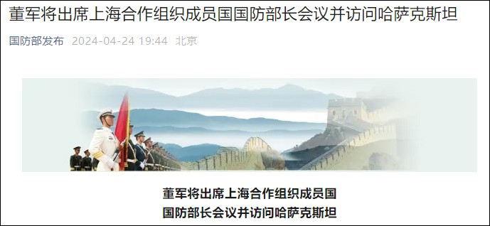 香港中通社4月25日電 24日至26日,中國國防部長董軍將應邀出席在哈薩克斯坦首都阿斯塔納舉行的上海合作組織(上合組織)成員國國防部長會議並訪問哈薩克斯坦。