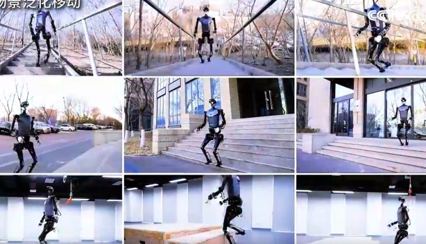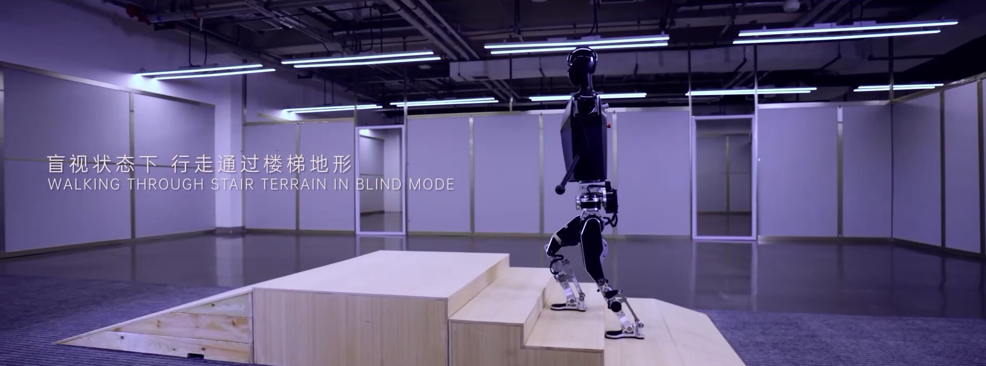 發佈會上,“天工”還為現場觀眾帶來了一場精彩的“演出”,展示出“天工”對複雜環境更強的適應性,在行走及奔跑時更快速、更擬人,已實現6公里/小時的穩定奔跑。同時,在盲視情況下,“天工”能够平穩通過斜坡和樓梯,對磕絆、踏空等情況也可以做到步態的敏捷調整。充分說明了運動控制方法對各種地形的強大適應性,在後續開發的基於感知的步態後,將帶來更強的通過能力。