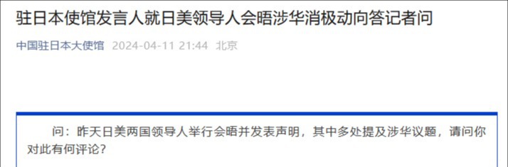 香港新聞網4月28日電 據中國駐日本大使館網站26如消息,中國駐日本使館發言人就日方涉釣魚島消極動向答記者問。