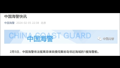 中國海警依法對菲律賓侵闖黃岩島鄰近海域的船隻實施驅離