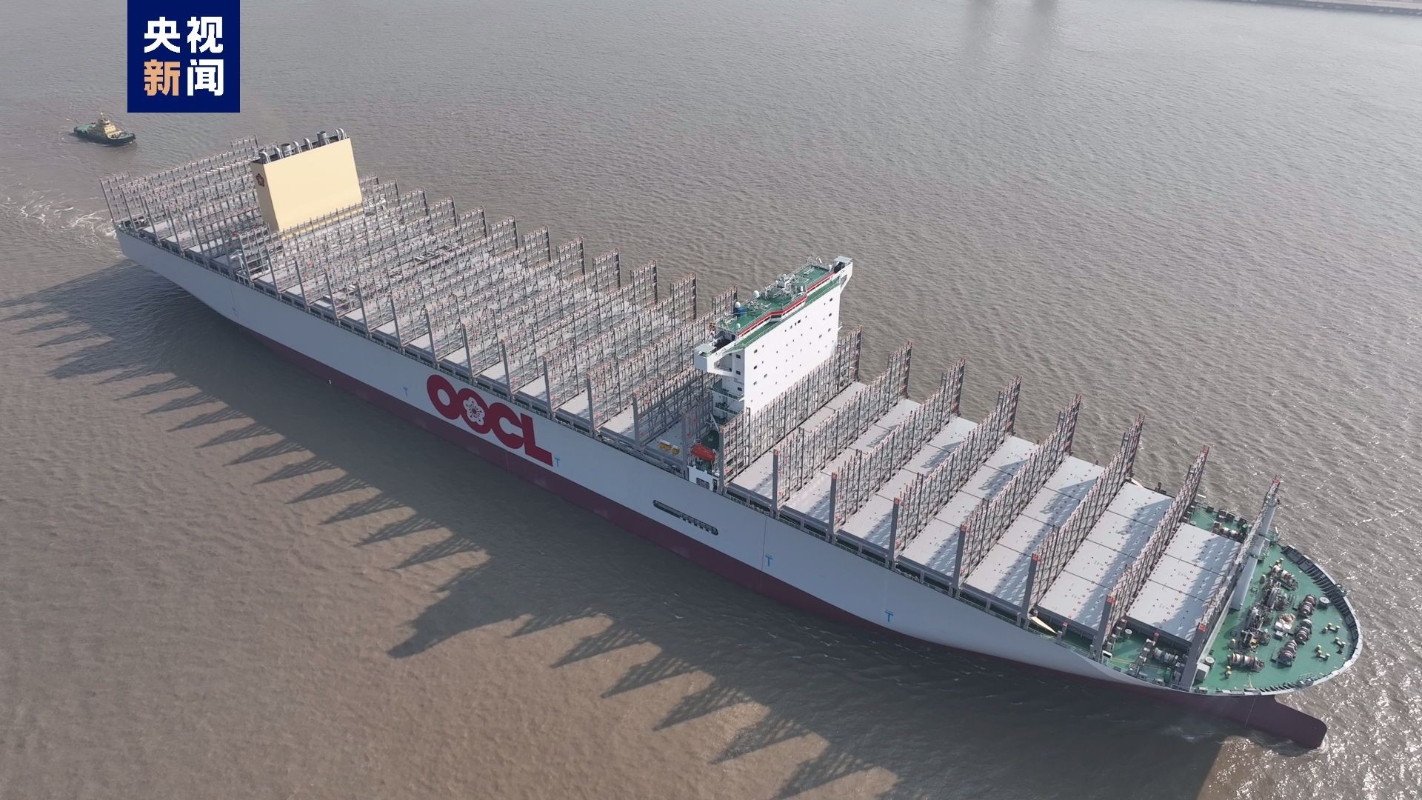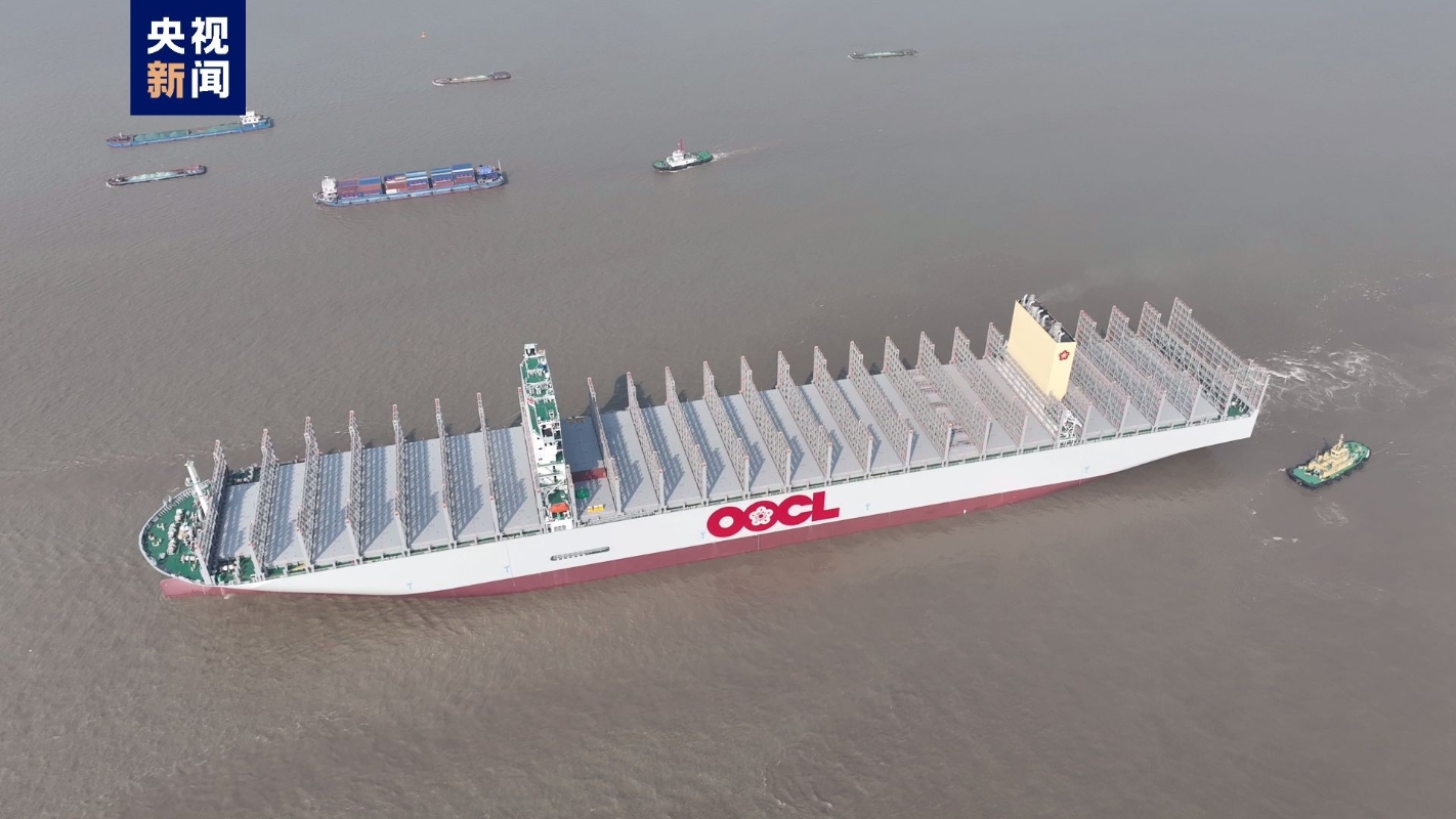 該輪是南通這家船企完全自主研發設計建造的同系列船型的第五艘試航船舶,作為全球最大裝箱量、最大級別綠色環保型的集裝箱船,“中遠川崎397”輪船長399.99米,船寬61.3米,型深33.20米,甲板面積比3個標準足球場還要大,滿載時相當於240多列火車的裝載量。