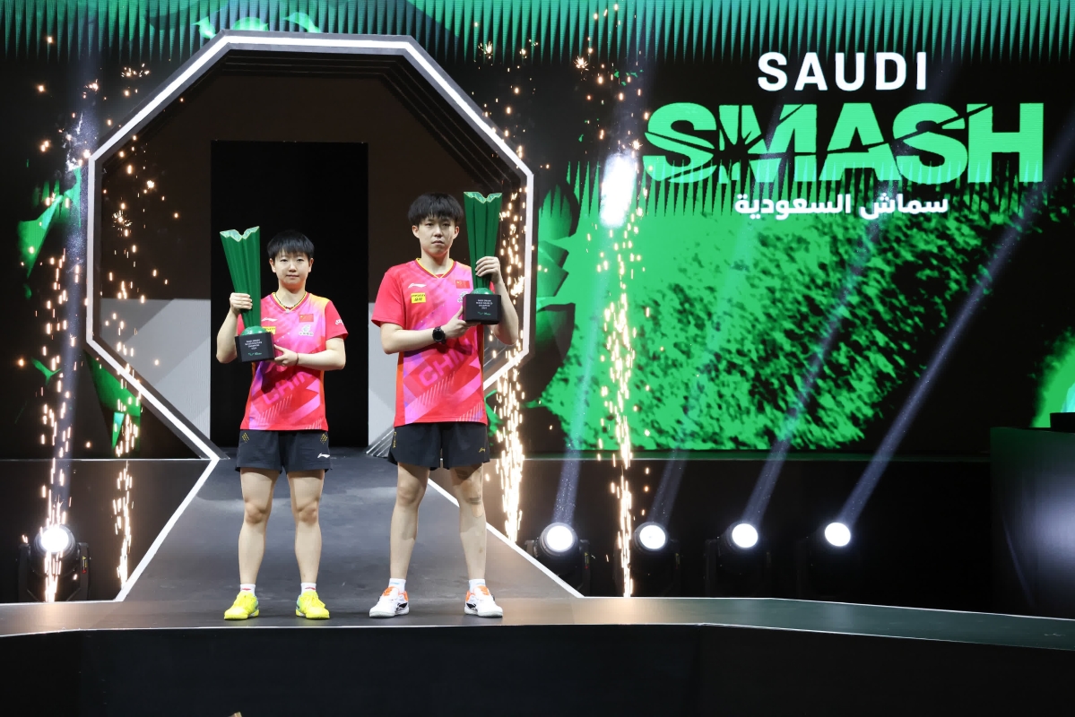 香港新聞網5月10日電 在5月9日進行的2024年世界乒乓球職業大聯盟(WTT)沙特大滿貫賽中,中國隊選手王楚欽/孫穎莎直落三局,獲得混雙冠軍。
