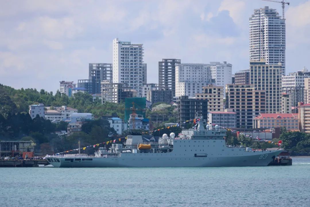 香港新聞網5月20日電 執行遠海實習訪問任務的中國海軍83艦編隊19日抵達柬埔寨西哈努克,開始對柬進行為期4天的友好訪問。 當地時間上午10時,中國海軍83艦編隊靠上西哈努克港碼頭。中國駐柬埔寨大使王文天等軍地領導、中資機構代表、華僑華人代表、柬埔寨軍方領導及海軍官兵代表等300餘人到碼頭迎接。