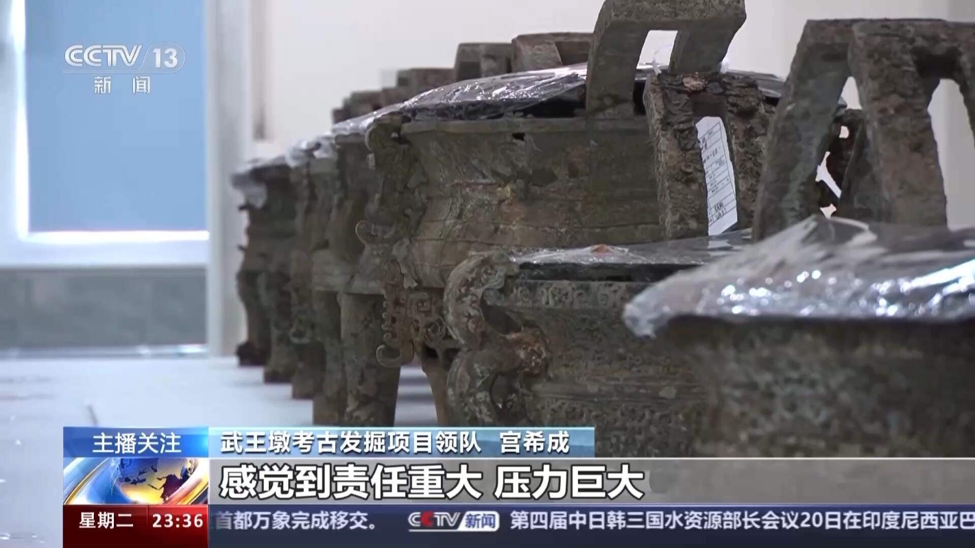 武王墩考古發掘項目考古一組組長 張聞捷:基本上它的年代就很精確,所以它可以成為戰國晚期銅器的一個標準器,一個年代的標尺,讓我們知道戰國晚期這個銅器應該是長這個樣子。對於楚王這個級別,應該用什麼樣的鼎,能够進一步把它完善出來。