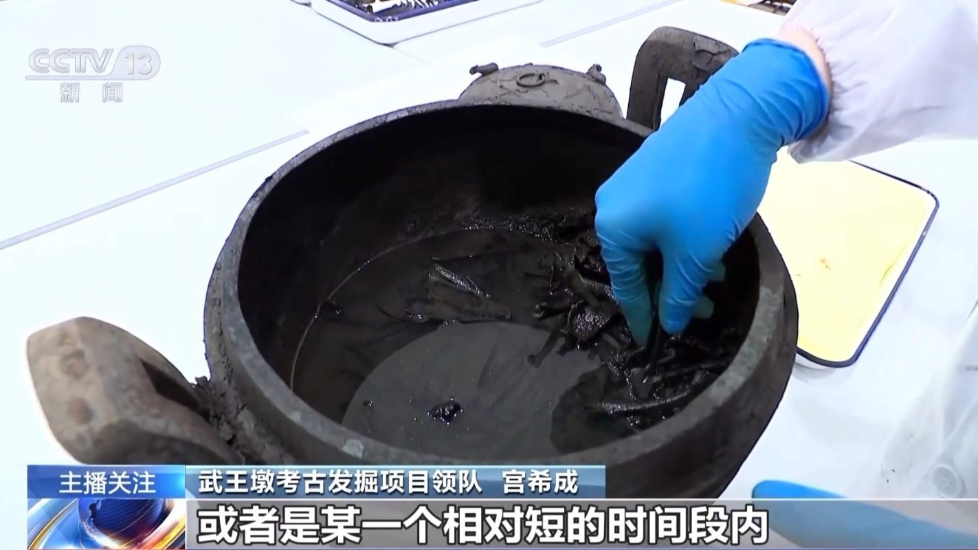 武王墩考古發掘項目領隊 宮希成:漢初的文物和戰國末期的文物,之所以有的時候分不太清楚,就是它離得太近了,而且變化不太大。過去沒有哪一個墓發掘之後,能够很精確判斷到哪一年,或者是某一個相對短的時間段內,有一些模糊也很正常。 據介紹,截至目前,武王墩大墓發現的青銅鼎,在整個墓葬的青銅禮器中,數量最多,種類最豐富。其時代坐標清晰,這就為研究戰國晚期青銅器藝術,以及漢代青銅器的演變等課題,同時也對其他墓葬的斷代,提供了參考標準。