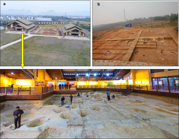 上山遺址(a和c)及荷花山遺址(b)的位置(中國科學院地質與地球物理研究所供圖) 研究結果表明:早在約10萬年前,野生水稻就已在長江下游地區分布;約2.4萬年前,人類開始采集并利用野生水稻;約1.3萬年前,人類有意或無意地對野生水稻進行馴化前的栽培;約1.1萬年前,東亞稻作農業起源。