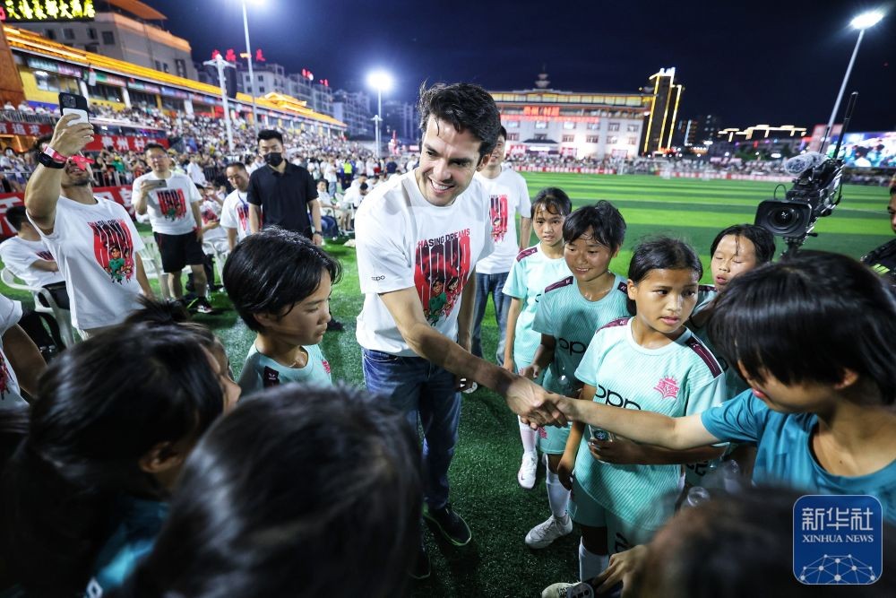 香港新聞網5月28日電 5月27日,“逐夢”冠軍公益賽在中國貴州省黔東南苗族侗族自治州榕江縣“村超”球場舉行。 據新華社消息,本次公益賽包括“逐夢”冠軍青少年女足公益賽與“逐夢”冠軍明星公益賽,巴西足球名宿卡卡、前中國女足隊員王坤等亮相球場。