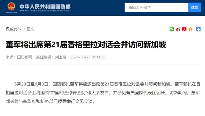 香港新聞網5月31日電 當地時間5月31日,中國國防部長董軍與美國國防部長奧斯汀於香格里拉對話會期間在新加坡舉行會晤。