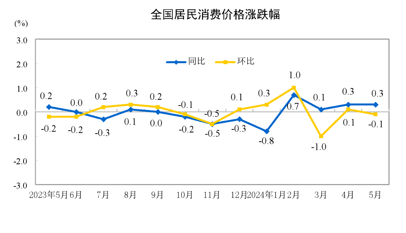 中國國家統計局:5月全國居民消費價格同比上漲0.3%分享到: