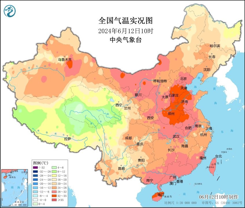 香港新聞網6月12日電 據中國中央氣象台網站消息,中央氣象台6月12日6時繼續發佈高溫橙色預警:預計6月12日白天,內蒙古西部、新疆南疆盆地、寧夏北部、陝西、山西中南部、河北中南部、北京、天津、山東中西部、河南、安徽中北部、江蘇北部、湖北北部和西部等地有35℃以上高溫天氣,其中,新疆南疆盆地東部、陝西中北部、山西南部、河北中南部、北京東南部、天津西部、山東西部、河南、安徽北部、湖北西北部等地部分地區最高氣溫37~39℃,河北中部、山東西北部、河南中北部部分地區可達40~42℃。