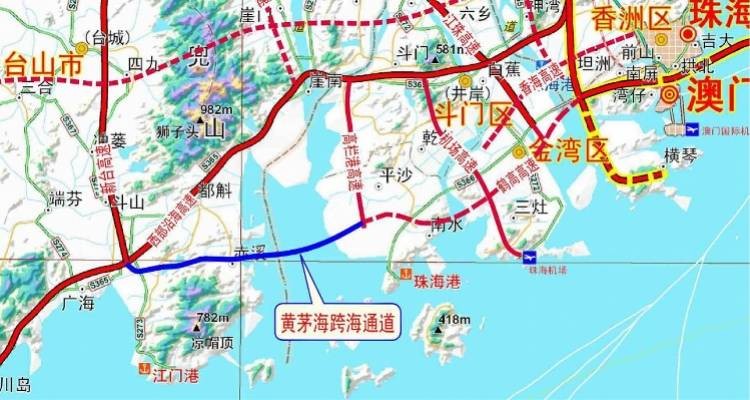 黃茅海大橋所處位置示意圖(資料圖) 黃茅海大橋跨越黃茅海海域的兩條航道,採用3塔2跨的獨特設計,是一座採用獨柱式雙索面全漂浮體系的斜拉橋。大橋單孔跨徑達到720米,橋樑全長2200米。黃茅海大橋橋面採用分體式鋼箱樑設計,橋面總寬50.4米,這是分體式鋼箱樑在廣東省內首次大規模應用。 黃茅海跨海通道預計今年底建成通車 目前,黃茅海跨海通道建設進展順利,預計2024年底建成通車。建成後,將與港珠澳大橋、深中通道、南沙大橋、虎門大橋,共同組成粵港澳大灣區跨海跨江通道群,助力粵港澳大灣區早日形成世界級交通樞紐。 黃茅海大橋建設突破三大技術難關 作為世界上跨徑最大的三塔斜拉橋,黃茅海大橋在建設中突破了多個技術難關,展現了中國橋樑建設的實力。 黃茅海大橋建設中遇到的第一大難題就是颱風。由於地處珠江西側的入海口,這里正是颱風登陸的區域,項目建設中就曾遭遇多個超級颱風的侵襲。如何規避颱風對建設期和運營期的安全帶來的影響,對建設單位來說是一個非常大的挑戰。