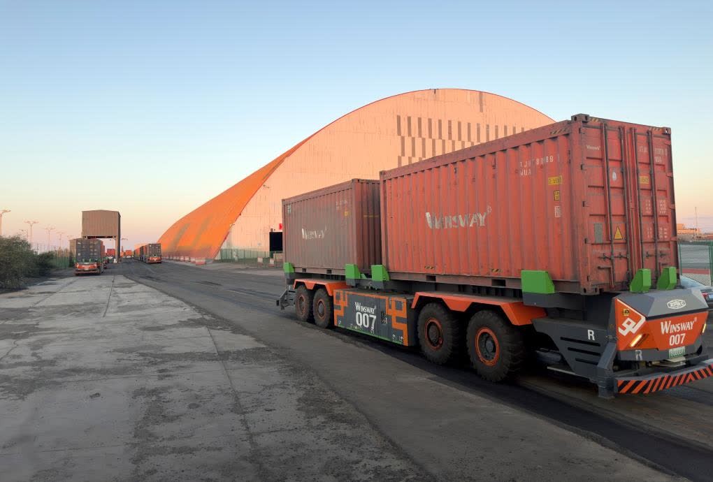 甘其毛都口岸運行AGV無人駕駛車。新華社 據新華社報道,該條通道北起蒙古國嘎順蘇海圖口岸數字化集裝箱港,南至中國甘其毛都口岸AGV智能通關及集裝箱監管場所,全長6.19公里,雙向四車道,由海關智能卡口和封閉公路構成。 記者現場看到,來自蒙古國的AGV無人駕駛車排隊入境甘其毛都口岸,海關智能卡口自動讀取、核驗車輛艙單和載貨清單電子數據,並在30秒內抬桿放行。呼和浩特海關所屬烏拉特海關關長尚貴民說:“甘其毛都口岸跨境無人運輸通道貫通後,通關時效更快,跨境運力更大,智能化應用水平也更高,進一步完善口岸功能定位,推動通關過貨提速擴量。” 甘其毛都口岸位於巴彥淖爾市烏拉特中旗境內,北面與蒙古國南戈壁省毗鄰,是中國沿邊省區過貨量最大的公路口岸。2022年7月16日首創AGV無人駕駛車跨境過貨,截至今年5月底累計入境AGV無人駕駛車7.3萬餘輛次,運輸進口貨物480餘萬噸。(完) 【編輯:丘志彬】